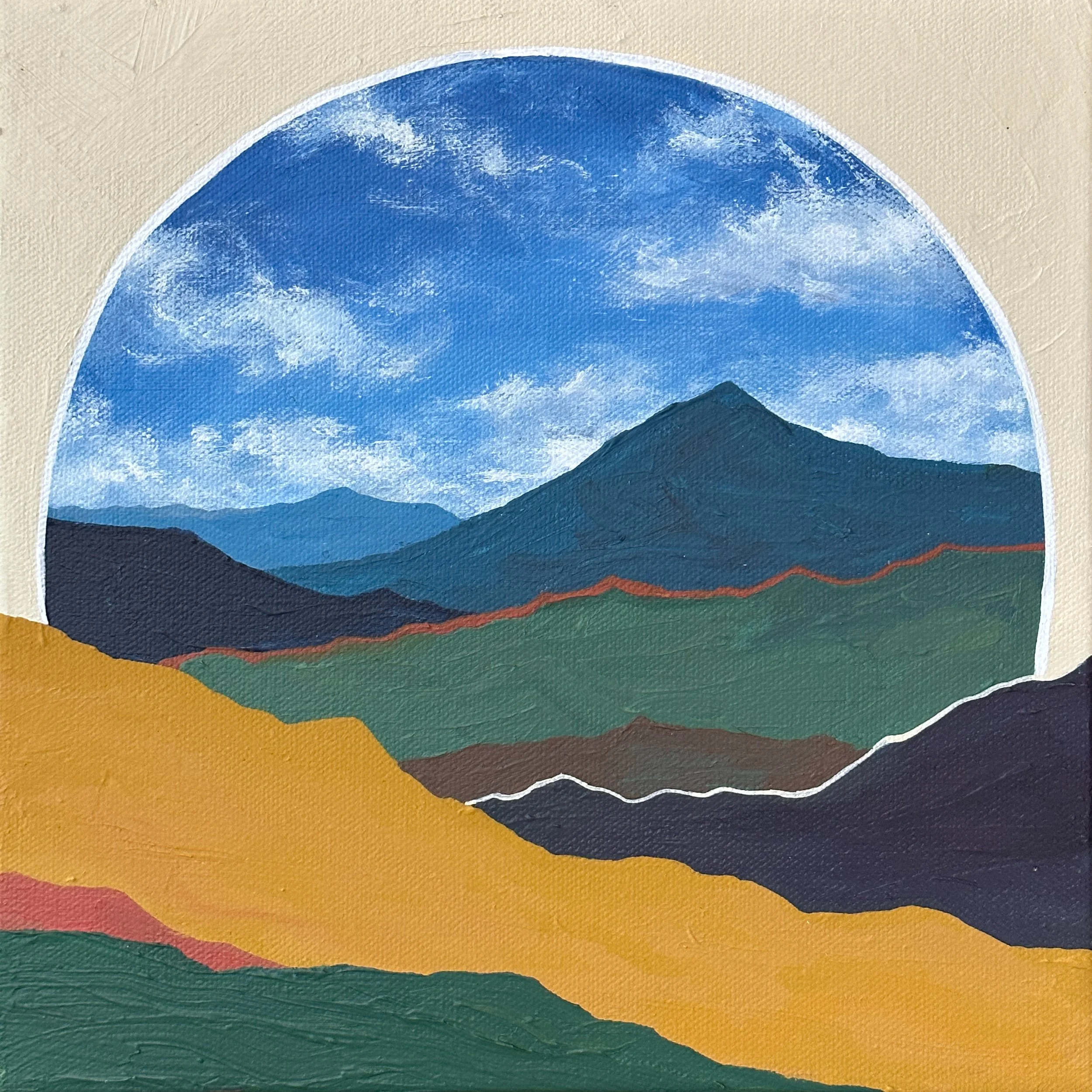 I remember the line of the horizon and of cliff faces, the colors of the sunsets, and the shadows from rolling hills. Landscapes from distant memories merge with new experiences and I paint places that I’ve never been yet feel longingly like home. Only a sky or body of water or a mountain peak may stand out enough in my mind to paint with detail while the rest fall into the abstract.